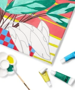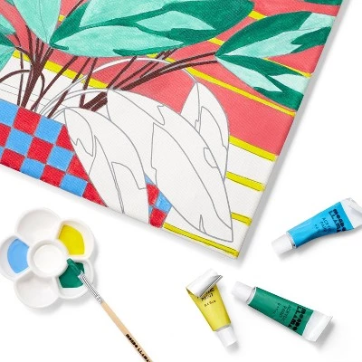 Brighten your day with the Paint-Your-Own Canvas Kit Plant from Mondo Llamaâ„¢. This fun art kit features an 11-inch by 11-inch canvas with printed leaves against a striped background for a pretty look you’ll love to fill in with color. It comes with three paintbrushes and six vibrant acrylic paints in red, orange, yellow, green, blue and white that you pour into a paint palette for convenience. Perfect as a relaxing project on the weekend, this paint-your-own art kit lets you bring life to the canvas.