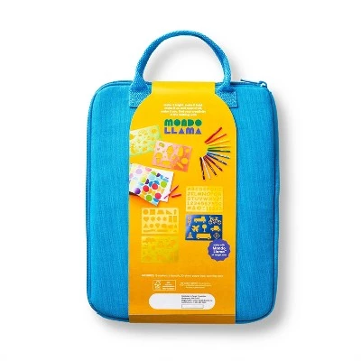 From afternoon arts and crafts time to on-the-go activities, kids will love creating impressive works of art while sharpening their creative skills with the Super Sketches Stencil Kit from Mondo Llamaâ„¢. This stencil set comes with 12 markers, six stencils and a 30-sheet paper pad to get started right away, along with a carrying case to keep everything in one place while allowing for convenient fun when out and about. Stencil designs range from alphabet letters to animals and geometric shapes to modes of transport, offering a fun range for all interests, and the plastic stencils make it easy to see artwork beneath.