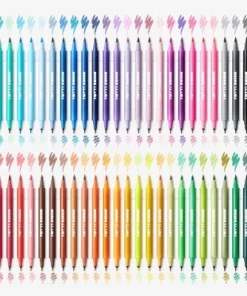You’ll love dreaming up colorful creations to make with this set of 48-Count Dual-Tip Brush Markers from Mondo Llamaâ„¢. This set of 48 brush markers features a wide variety of vibrant colors perfect for drawing, calligraphy and hand lettering on multiple styles and finishes of paper. Each marker has both a fine brush tip and regular brush tip end, giving you more control over your line widths to achieve the look you want. Plus, this set of dual brush-tip markers also comes in a convenient plastic case for simple storage and carrying. Artwork by Jordan Kay.
