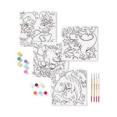 Star a fun new activity that’ll keep you entertained for hours with this 4-Piece Paint-Your-Own Canvas Panel Pack from Mondo Llamaâ„¢. This paint-your-own pack features a dinosaur canvas, turtle canvas, shark canvas and space canvas to encourage your little one to express their creative side. The set comes with 12 paints and 4 paintbrushes, giving you everything you need to mix up new colors and create unique creations. Perfect as a relaxing project on the weekend, this paint-your-own panel pack is sure to liven your day and home decor.