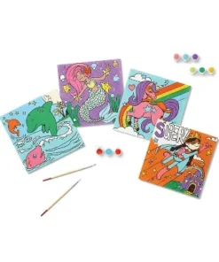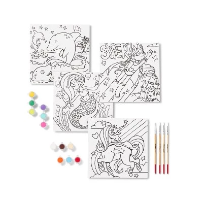 Start a fun new project with your kiddo with this 4-Piece Paint-Your-Own Canvas Panel Pack from Mondo Llamaâ„¢. This paint-your-own pack features a mermaid canvas, dolphin canvas, unicorn canvas and superhero canvas to encourage your little ones to express their creative side. The set comes with 12 paints and 4 paintbrushes, giving you everything you need to mix up new colors and create unique creations. Perfect as a relaxing project on the weekend, this paint-your-own panel pack is sure to liven your day and home decor.