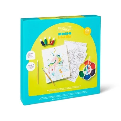 Add artistic fun to your leisure time with this Watercolor Resist Paper Set from Mondo Llamaâ„¢. This watercolor resist kit includes four watercolor dropper bottles, two paintbrushes, one pipette, a paint palette, a 24-page art pad and an instruction sheet to let you brush over different floral, mandala or animal resists so they come to life in a rainbow of colors. Great for both young and young-at-heart artists, this watercolor resist set makes a fun and creative weekend or leisure activity.