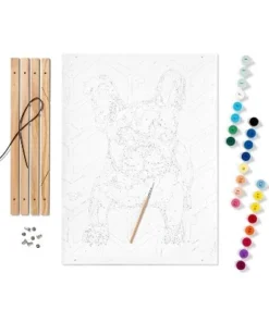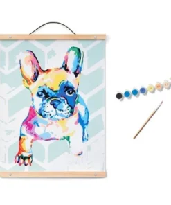 The Bulldog Paint-by-Number Kit from Mondo Llamaâ„¢ will provide hours of creative fun for you. This painting kit includes a white canvas sheet, 24 acrylic pots, a paintbrush, wooden frames with screws and a hanging cord, and an instruction sheet. The canvas board is preprinted with an adorable drawing of a bulldog against a brick-like geometric background, and is left uncolored and marked with numbers. You will love to bring this canine artwork to life by matching the numbers to the acrylic paints and filling in the corresponding hues. When done, assemble the wooden frame and attach the cord to make it ready to hang with pride.