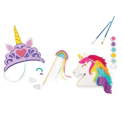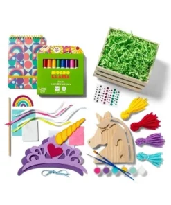 Present a beautiful gift to an artist in your life with the Pre-Filled Easter Basket from Mondo Llamaâ„¢. This pre-filled Easter basket includes yarn, paintbrush, markers, acrylic paints, drawing pad and unicorn wood shape for a complete creativity set. When the artistry is finished, they pieces can be displayed or worn with pride.